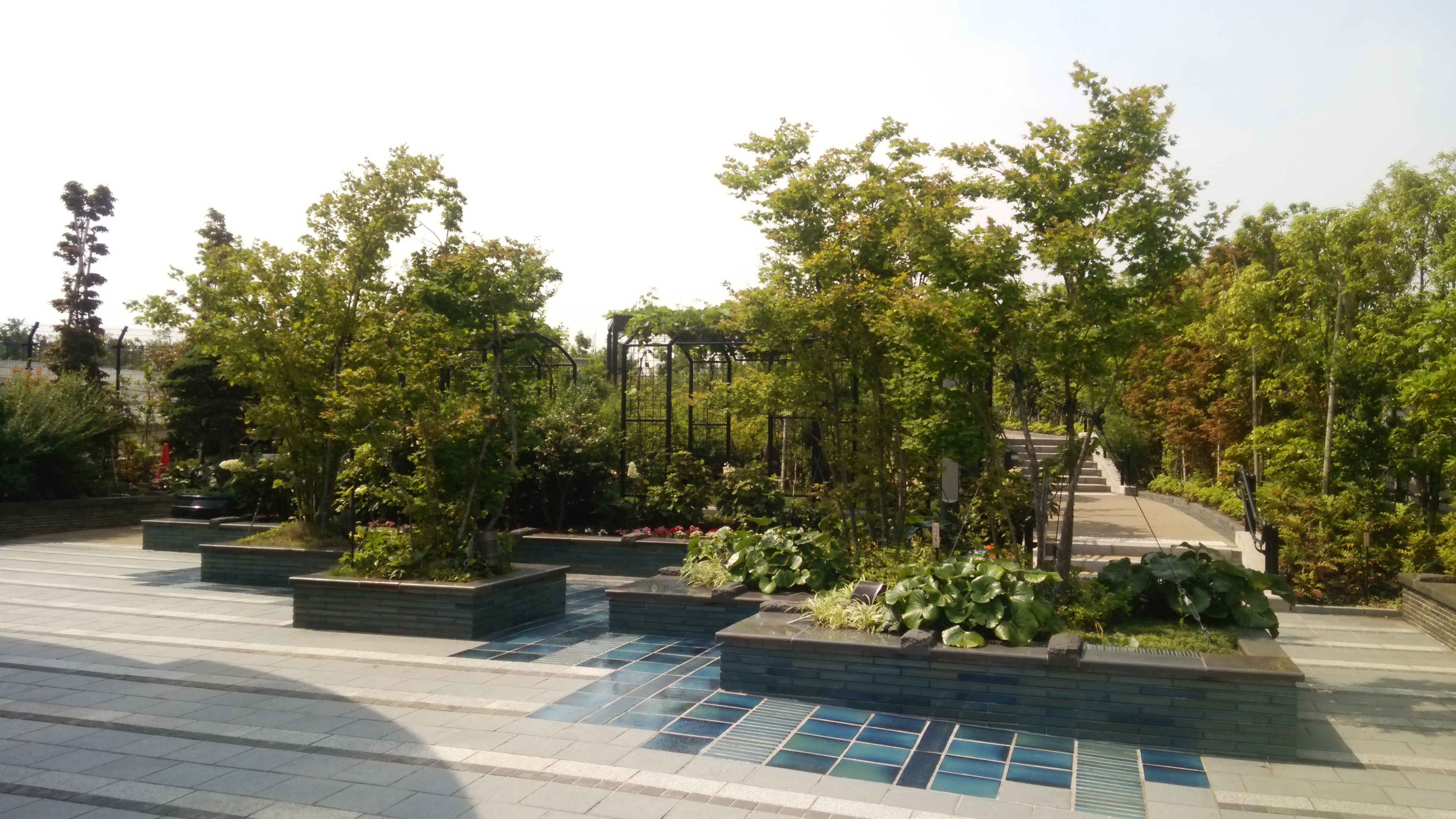 また、庭園の楕円形の内側は「オーパス夢ひろば」と名付けられていて、フットサルコートやじゃぶじゃぶ池があり、レジャー施設として楽しむことも出来ます。